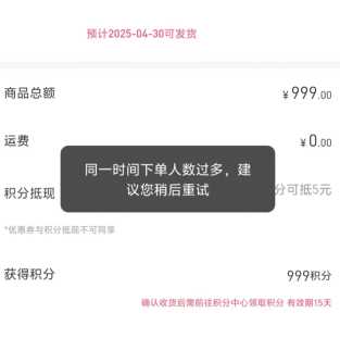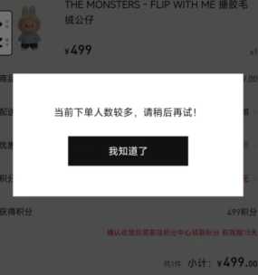 泡泡玛特下单人数过多怎么办晚上将近7点,labubu毫无通知线上全渠道突袭!这时端倪已现,有个别小伙伴出现提示。大部分小伙伴仍然没有拿下心慕已久的大首领,原因就是最后一步竟然出现“同一时间人数过多,建议稍后重试”再返回已然无货,把人急坏了。 分析:此次限制乃是随机、无规律的出现,即使普通玩家也无法避免被盾,神器玩家也有能够成功拿下的。 因此本人推测,此次乃是泡泡的新盾(防止kj/多设备选手)测试,可能是根据(ip地址、设备、号码)等方式去加盾,先在16点放出小米兰进行观察,随后小程序大更新盾正式被加入生产环境。 但是此次测试结果却不尽人意,因为连正常的玩家都被无差别影响,而有些神器选手仍然畅通拿下。 解决:基于上述分析,正常玩家无需担心,提示“同一时间”并非是黑号,测试过后应该会恢复。如未恢复,签到/静置一段时间即可。 真正的黑号是“当前人数较多…”提示(图2),此种提示代表不可能再次恢复。最后,泡泡应该在加紧修复盾中,普通玩家此次纯属误伤,后续放货应该可以正常抢购,无须担心。 小tip:尽量不要使用wifi抢购#你买到大夏或者大首领了吗