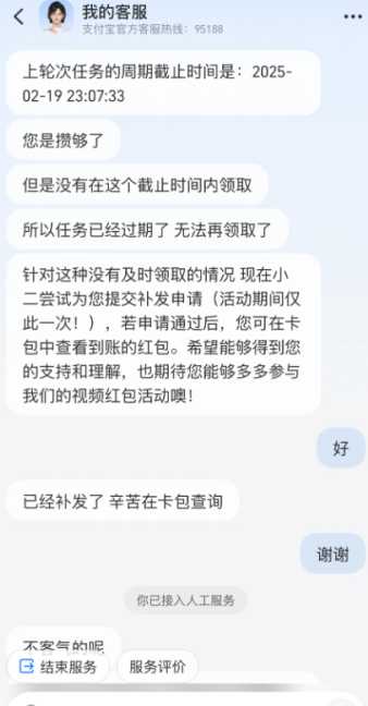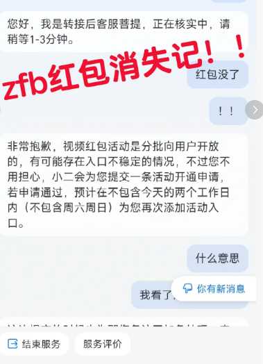 支付宝视频红包没领不见了近日有小伙伴说自己两个一百都刷成了没有领然后过期了,真的会哭死,辛辛苦苦刷了二十多天,全都没了。 其实遇到这样的情况不要着急,可以去找客服补领的,只要你没领过,不过只有一次机会哦,就是支付宝这个视频活动的客服。