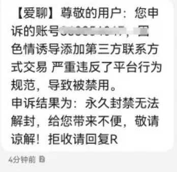 爱聊被禁用申诉等3-5工作日,会解封吗?是不是不少姐妹在使用爱聊的时候因为说了不恰当的话,或者是像对方索要礼物被举报了,然后账号就被永久封禁了,那遇到这样的情况该怎么办呢?下面就和小编一起来看看爱聊被永久封禁的解决方法。