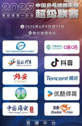 2025乒超联赛在哪直播2025赛季乒超联赛一阶段|转播平台 咪咕视频/优酷体育/ 腾讯体育/腾讯视频/腾讯新闻 “双鱼乒燃心动”视频号 “中国乒乓球协会会员服务中心”视频号 “河北体育”视频号&🫘 “雄安”客户端/“雄安发布”视频号 “中国雄安官网”视频号