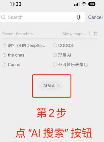 微信ai功能在哪里打开方式一:普通用户的福音,再也不充钱了,微信App内置了 DeepSeek 联网搜索功能。 只需简单四步: 1、下拉微信菜单,点击搜索框;