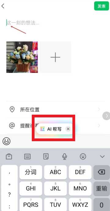 微信ai帮写功能怎么打开教程目前来说安卓手机有这个功能,苹果是没有的哈,下面看一下ai帮写是怎么玩的: 1,添加图片或者转发推文到朋友圈,点击输入框,就会出现AI帮写;