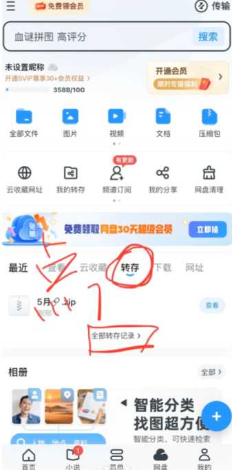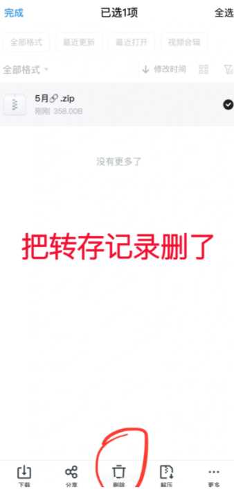 3,进入之后把转存记录删除;