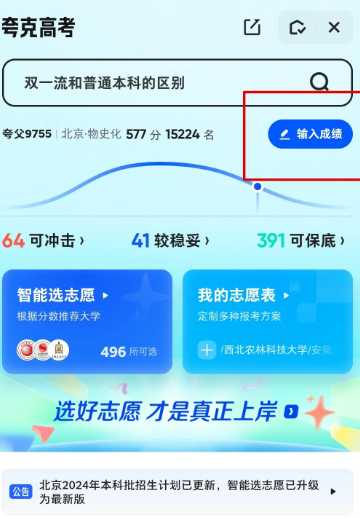 夸克志愿填报可靠吗是免费的吗是免费的。 夸克志愿填报不能说是完全可靠,只能借鉴,不能完全依赖,小编在网上就看到有小伙伴说我去年就是相信了夸克然后成功复读,全部滑了,nnd去年我物理430没书读。 总之,不要轻易相信或者依赖一个APP,多方收集信息,但是还是以当地教育官网发布为准这些只能作为参考 夸克志愿填报怎么用如何正确使用?以“专业组+院校”模式的省份为例: 1,进入夸克高考频道,选择省市地区,输入成绩信息;