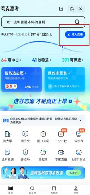 夸克艺术生高考志愿填报使用教程1,进入夸克高考频道,选择省市地区,输入成绩信息,找不到的点击更多--夸克高考进入;