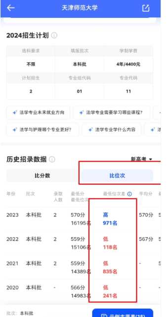 7,对照往年该专业录取位次,对于不能稳上的院校专业(近三年专业录取位次高于或等于自己位次的,或者虽略低于自己的位次但录取人数很少的),只要该专业组下任意一个专业自己无法接受,就果断放弃(这是数据,不要相信运气,不信邪的下场就是你报的临床能调去护理,报计算机能调去中文)