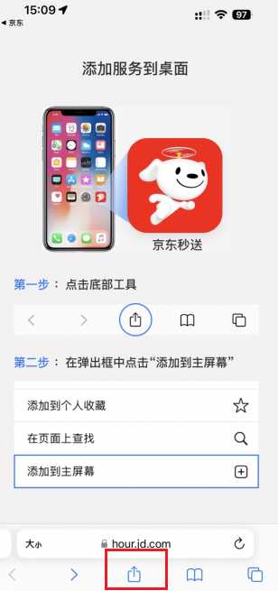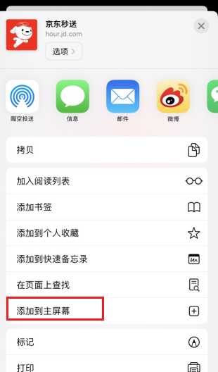3,选择【添加到主屏幕】进入;