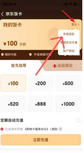 3,进入之后再最上面的京东饭卡那点击更多---申请退款;