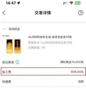 支付宝黄金实物兑换划算吗要补钱吗要的。需要手工费,不需要手续费。 感觉不太合适呢,808的加工费我都再能买1g了,兑换完了有点后悔,我还不如直接卖了呢。 不是动物的,就单纯刻字的10g金条的加工费好像是758,比这个便宜,但是现在剩的那个太难看了,还刻的网址,要是换两个5g的加工费也超了808,最后还是选择了生肖款
