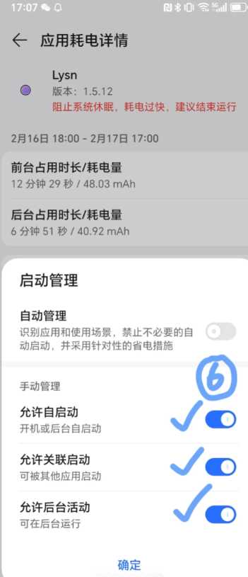 ②在设置找到电池,下滑找到lysn,点击启动管理,将所有选项都打开。