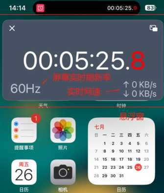 打开悬浮窗口 不止有更大的实时倒数计时⌛️ 还有实时的屏幕刷新率和网速显示(图6)