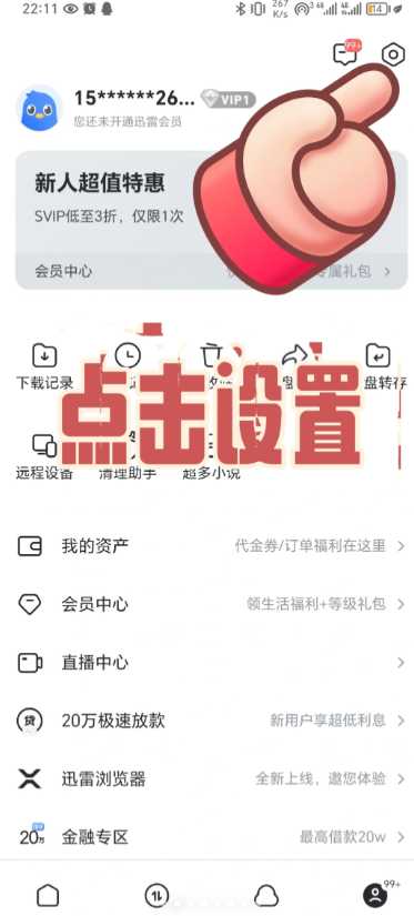 迅雷app下载文件在哪1,打开迅雷app,点击设置;
