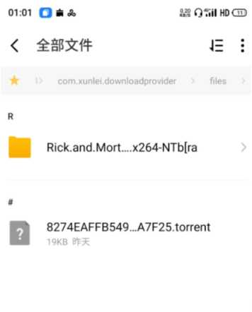 迅雷app下载文件路径如图,全部文件里点Android--date--com.xunlei.downloadprovider--files--ThunderDownload就能看见你下载的文件了,不得不说,这个默认路径不完全显示是有点恶心,我是看访问时间才找到的