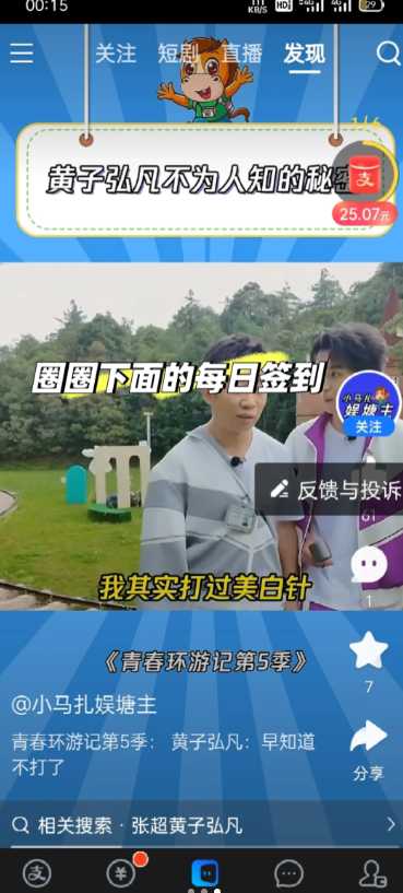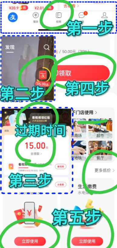 注意>2分钟的长视频可以挂时间,但到转最后一圈时候要划走,不然可能一轮就只有0.01。头几天需要看着点,后期一轮固定0.01就随意了。所以前期还是尽量多攒一点减轻后期压力。 支付宝刷视频领红包在哪里首页最下面中间,点视频,参加“发现”页刷视频领红包活动。在规定时间内刷满红包金额后领取,点右上角的红包能看到目前进度和剩余时间。获得的红包线上线下都能使用,买东西或交话费水电费之类的很合适。