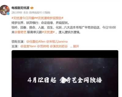 无忧渡定档4月12日由任嘉伦、宋祖儿主演的悬疑志怪剧《无忧渡》终于在今天(4月12日)官宣18:00登陆爱奇艺,首日连更6集,会员每日再追2集,非会员次日也能解锁新剧情。