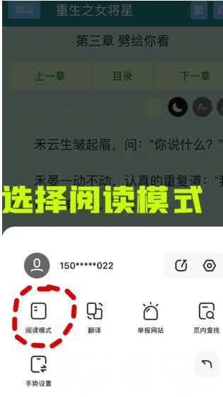 3,进入之后选择“阅读模式”,全程无广告,还不用翻页。