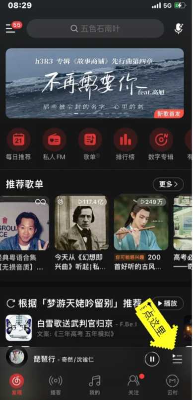 网易云歌词怎么显示在屏幕上苹果手机1,打开网易云app,正在播放歌曲的时候,点击右下角的三条杠;
