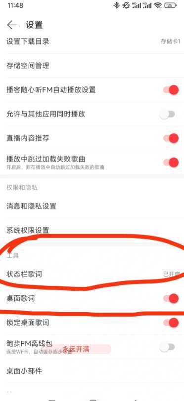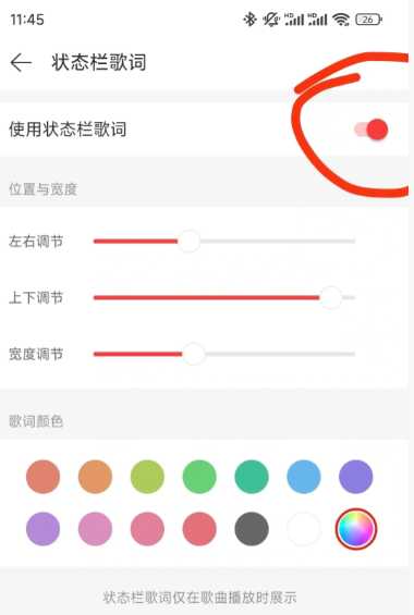 2.状态栏歌词,桌面歌词,可二选一 ;