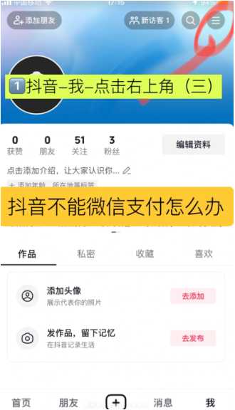 抖音微信支付突然没了什么原因可能是系统出现了一些问题吧,下面看一下具体的设置教程: 1、抖音-我-点击右上角(三)-进入更多选项。