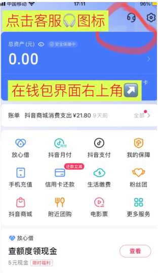 2、找到【我的钱包】,在钱包界面,右上角有一个客服(🎧)的按钮,进入钱包客服中心。