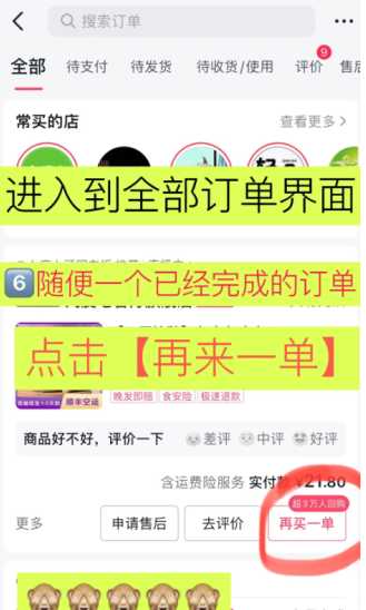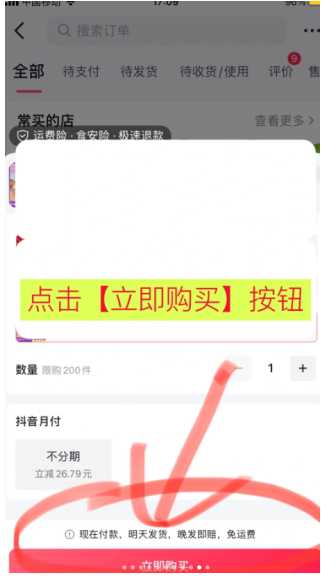 6、随便一个订单,点击一下【再买一单】,在下单页面,直接点击【立即购买】;
