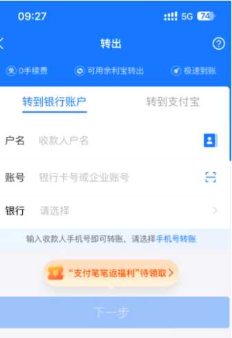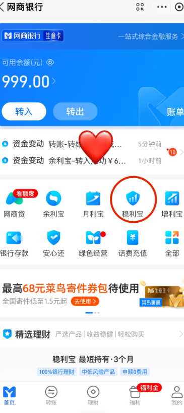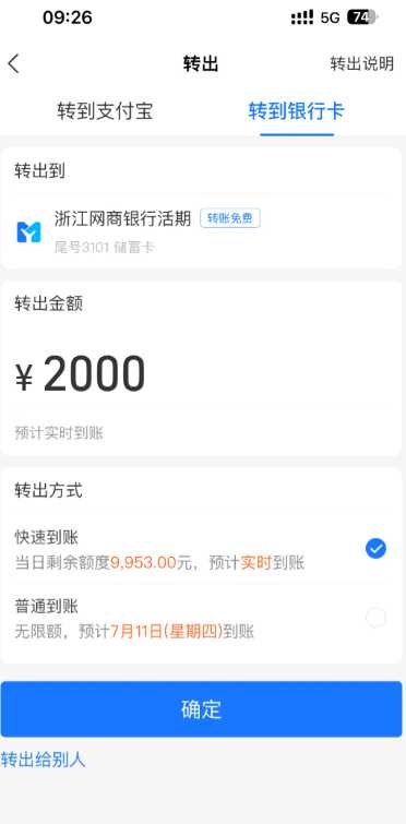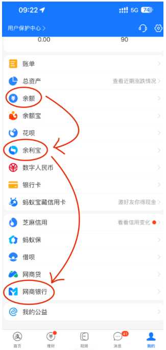 方法二:余额→转到余利宝→再转到网商银行→免费提现到银行卡里,注意,这个只有五万的免费提现额度;