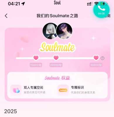 soulmate点亮会怎么样在Soul上点亮Soulmate是相当于一种亲密关系的认证,点亮了之后会建立独有的Soulmate关系,同时拥有两个人专属的情侣空间,然后两个人发的瞬间是在同一个空间里的,其他人在这个情侣空间里能够看到两个人发的瞬间。 还是挺有意义的,两个人一点一点搭建属于二人的小世界。想要点亮这个也不容易,要两个人有很多共同话题,经常聊天互动积攒爱心才能慢慢点亮字母,等到整个Soulmate的单词全被点亮才能创建成功。
