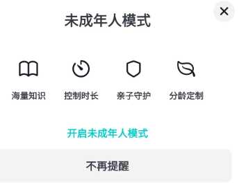 抖音一打开就显示青少年模式什么意思大家应该都碰到过安卓手机进入抖音的时候会跳出青少年模式提醒,你要么进入青少年模式,要么选择知道了,提醒会消除,但是下次进入APP的时候又会跳出这个提醒。一次两次那叫提醒,每次提醒那和流氓软件有啥区别。