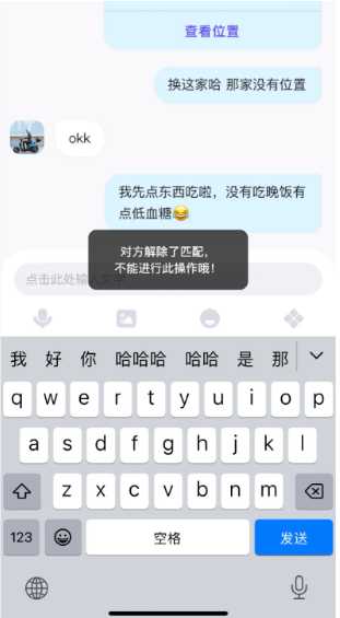 她说app取消匹配以后还能看到对方发的消息吗可以看到的。 以前对方取消匹配双方都会删除对话框,现在这个版本不会了,你看不到对话框,他还能看但发消息会提示对方已取消匹配。
