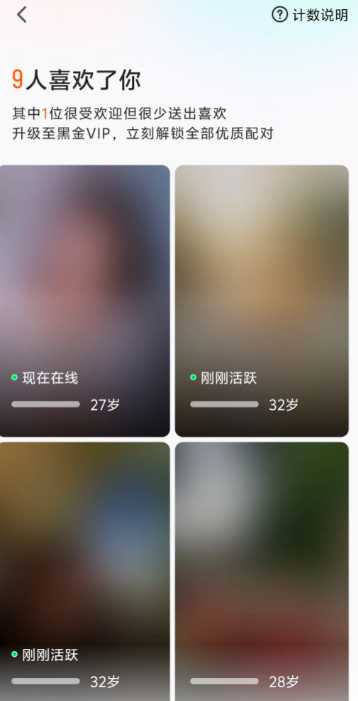 她说每天推荐21人,点喜欢不受限制,想看谁喜欢你必须要会员,283一个月。