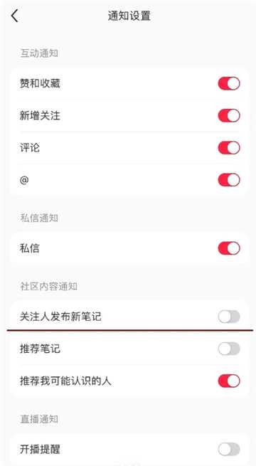 然后将【关注人发布新笔记】这个开关关闭就可以了。自己设置了一个几个星期了,没有再发现这种情况啦
