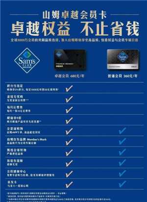 山姆卓越会员和普通会员区别:1. 权益方面: - 积分返利:普通卡无积分返利;卓越卡有积分返利,消费1元积2分,积分以回馈金形式到账,本月消费下月5号前回馈金到账,买单直接当钱花!有效期365天。每月上限提高到800元,一年最高可获得9600元返利。消费不够也没关系,普通卡和卓越卡的差价420是保底返的,直接抵扣下年续费费用! - 运费优惠:普通卡不享受每月的运费券;卓越卡会员每月可获得一张运费抵用券,在网购时可使用,满足一定金额即可免运费。 - 洗车及洗牙服务:普通卡没有相关权益;卓越卡会员可获得价值1000元的口腔护理代金券,用于洗牙等口腔护理服务,并且每月有一张指定车行的免费洗车券(具体洗车服务门店可能因地区而异)。 - 茅台购买资格:普通卡会员不具备该资格;卓越卡会员满足特定条件有机会参与平价飞天茅台的购买活动。 2. 开卡优惠券方面: - 普通卡开卡会赠送一些优惠券,如全场首单券、新人免邮券、牛奶券、全球购券等,但部分优惠券有使用限制和较短的有效期。 - 卓越卡开卡除了有类似普通卡的部分优惠券外,还有额外的全球购券等。 3. 副卡权益及积分规则: - 两种卡都有副卡,可赠送给亲友使用。但是卓越卡的副卡消费积分算在主卡上,副卡消费越多,主卡获得的优惠券金额可能越多。