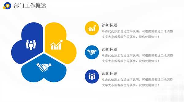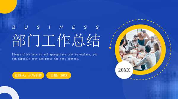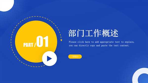 本模板适合用于制作工作总结PPT、工作计划PPT、工作汇报PPT。 蓝黄配色简约商务风部门工作总结PPT模板:这是一套蓝黄配色简约商务风部门工作总结PPT模板,共25页;