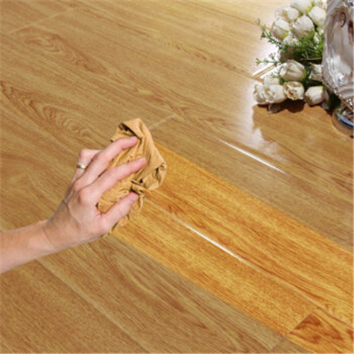 4、把装有地板蜡的容器摇下,然后在搅动匀和,使用干净得抹布浸蘸地板蜡。摇晃时并且要充分搅拌均匀地板蜡,可以先在局部进行试用,没有异常的情况以后在整个地板进行上蜡。根据木地板它本身的木纹方向仔细涂抹,涂抹的速度不能太快,不能有漏涂或薄厚不均。