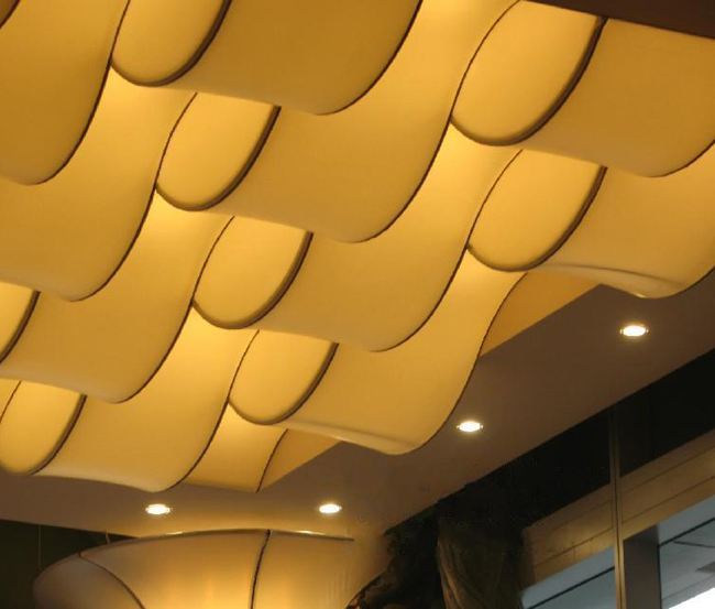 4、色彩 软膜天花板色彩多样,能给消费者提供更多的选择。 5、创造性 软膜天花板属于软性材料,可以根据龙骨形状来确认它的形状,造型较为随便、多样化。 6、便利安装 软膜天花板安装便利,在整个安装过程中不会有溶剂溶解、不对空间内的其它摆放产生负面影响。 7、安全环保 软膜天花板符合欧洲及国内各项检验标准,安全环保,符合当今社会的环保主题。